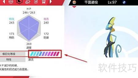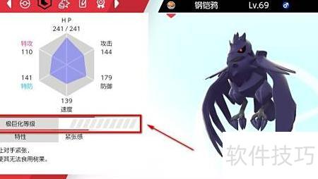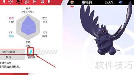 2、 在宝可梦能力面板中可查看极巨化等级。