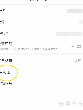 8、 进入账号安全,点击VV认证即可。