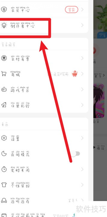 3、 随后出现设置菜单,选择进入创作者中心即可。