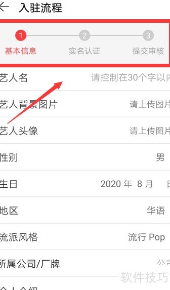 7、 填写艺人姓名、简介等资料,完成实名验证后提交,等待审核通过即可入驻。