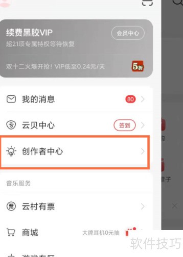 4、 打开网易云音乐,点击左上角菜单,进入创作者中心。