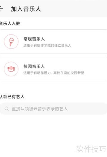 6、 加入网易云音乐人需先选择合适身份入驻,成功后方可发布作品。