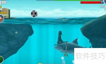 20、 点击屏幕加速鲨鱼,消耗红色能量条。