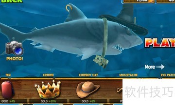 16、 选定鲨鱼后进入装备界面,可选择增加点数或金钱,请根据需求合理搭配。