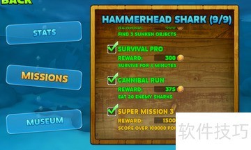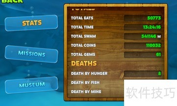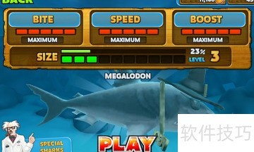 13、 点击evol即可进入游戏,每条鲨鱼拥有独特能力,等级越高,进食范围越广,游动速度与深度也越强。前一条鲨鱼进化至10级后,方可解锁下一条鲨鱼的购买权限。
