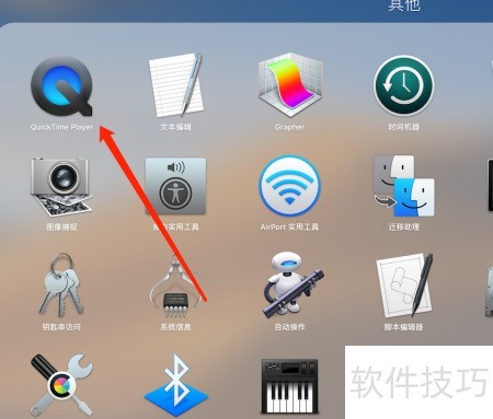 2、 下面介绍QuickTime Player的使用步骤,若已了解第一步可跳过后续内容。首先在其他文件夹中找到QuickTime Player,该播放器默认位于此处,打开后即可进行相关操作。