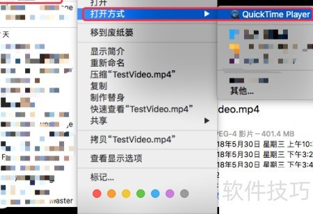 3、 右键点击视频,选择用 QuickTime Player 打开,操作所示。
