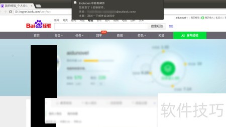 6、 当设定时间到达且有新邮件时,桌面顶部面板的通知区会弹出提示,点击该提示即可启动 Evolution 客户端查看新邮件内容。