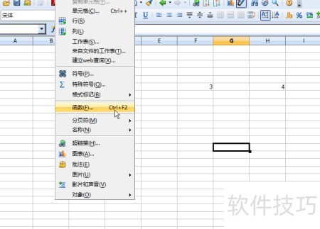 3、 选择其他单元格,依次点击插入菜单中的函数选项。