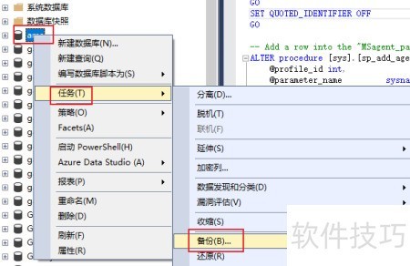 1、 选择需备份的数据,右键点击任务,执行备份操作。