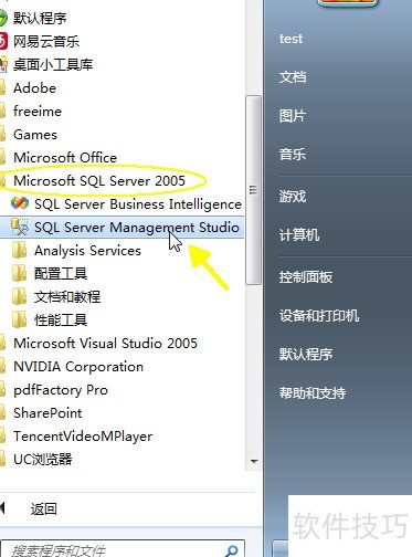 1、 在桌面左下角依次选择开始菜单,然后进入所有程序,找到Microsoft SQL Server 2005文件夹,点击其中的SQL Server Management Studio即可启动程序。