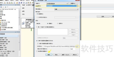 7、 双击左侧工具箱中的备份数据库任务,右侧将显示相应页面,再次双击该任务即可执行。