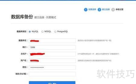 4、 输入数据库名称、主机IP地址、FTP账号及密码。