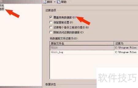 11、 在还原数据库的选项界面中,选中覆盖现有数据库的复选框。