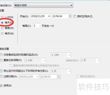 5、 在新建触发器窗口中选择每天执行,并设定开始时间为8:30,确认无误后点击确定完成设置。