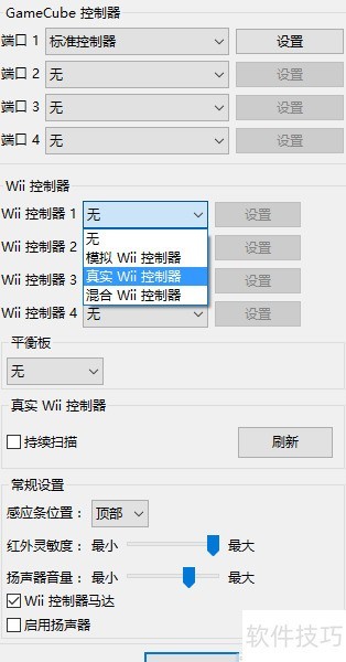 9、 将Wii控制器1的下拉选项设为真实Wii控制器即可完成设置。