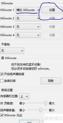 5、 配置Wii手柄时,选择Wii mote,将Wiimote1下拉菜单中的选项设为模拟WIImote即可完成设置。