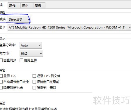 7、 进入图形设置,选择图形选项,将后端更改为Direct 3D。