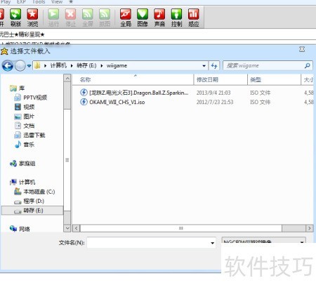 10、 点击主界面左上角的打开按钮,浏览至游戏镜像所在文件夹,选中目标游戏即可在电脑上运行Wii游戏。