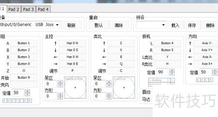 8、 接下来进行控制设置,可根据个人习惯自行调整。若使用手柄等外接设备,同样可在模拟器中操作。连接设备后,待左上角设备列表刷新识别,再进行相应配置。图示分别为键盘和手柄两种输入设备的设置界面,供参考选择适合的操作方式。