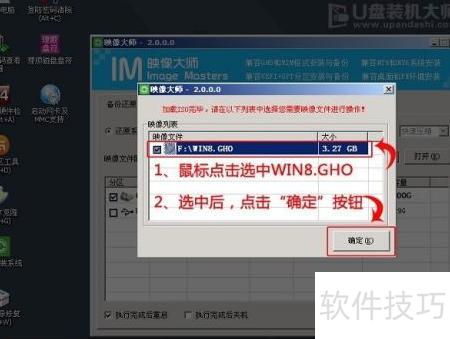 9、 若格式为GHO,请跳过此步。在弹出窗口中,点击选中WIN8.GHO文件,确认无误后点击确定即可完成操作。