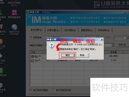 11、 恢复系统前,软件将弹出窗口询问是否继续,请核对信息无误后点击确定执行操作。