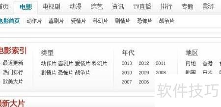 12、 进入电影网站的电影分类后,可根据国家、类型、主演等条件筛选,按个人喜好查找想看的影片。