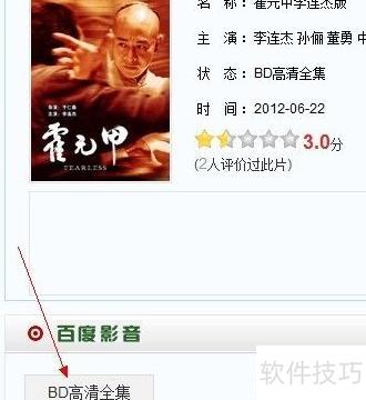 4、 打开百度影音,输入想看的电影名称如霍元甲,点击搜索即可查找并观看影片。