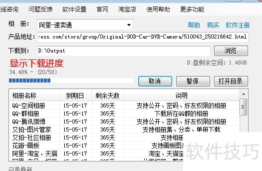 12、 该软件不仅能下载阿里速卖通的商品图片,还支持从多个主流平台批量获取图像资源,包括又拍图片管家、又拍相册、花瓣网、QQ空间及群相册、百度空间、百度贴吧的图册与图片、新浪微博和新浪博客相册、网易相册、POCO摄影社区、人人网相册,以及淘宝、天猫商品详情图和阿里相册等。功能丰富,覆盖广泛,因篇幅所限,此处不作深入展开,感兴趣者可自行探索使用。