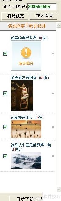 2、 打开qq相册批量下载工具,登录账号后选择目标相册,勾选图片并执行批量下载操作即可。