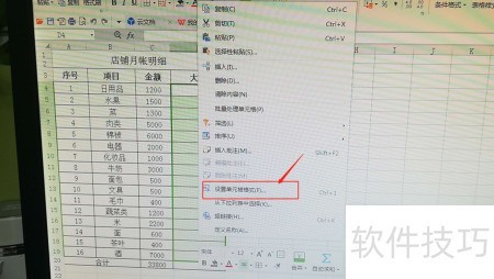 3、 选中目标单元格,右键选择设置单元格格式,操作所示。