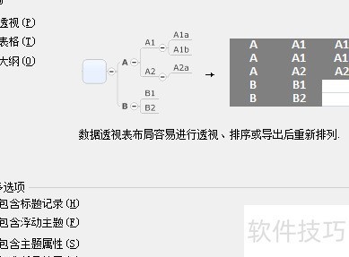 5、 点击界面底部更多按钮,可展开额外设置选项;用户可通过勾选,选择是否导出标题记录、浮动主题等内容;导出布局共提供三种不同形式供选择。