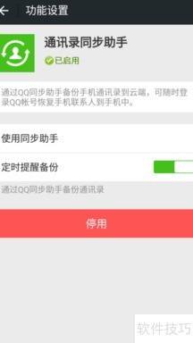 6、 进入通讯录同步助手页面,点击停用该功能即可关闭同步服务。