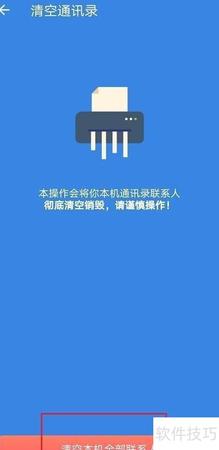 4、 清空通讯录后,点击底部选项清除本机所有联系人,操作所示。