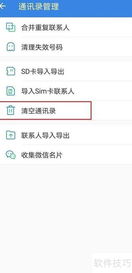 3、 进入第三步后,点击清除通讯录选项,操作所示。