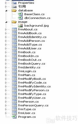 15、 公共类包括 dbConnection.cs 和 BaseClass.cs;image 文件夹专门用于存储图片文件;窗体文件则直接位于项目根目录中。整个结构层次分明,便于管理和维护各类资源与代码文件的组织。