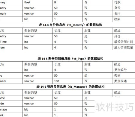 9、 借阅者信息表(tb_Person)与身份信息表(tb_Identity)共同构成数据管理基础。