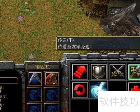 2、 点击技能面板第二排第二个图标,该图标形似星云,即可使用英雄的传送技能。