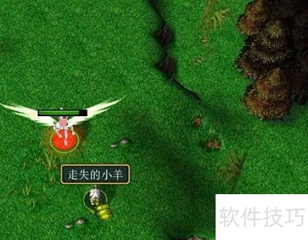 5、 沿着路径下行,找到图示的迷途小羊即可完成任务,获得丰厚经验,快速提升英雄等级。