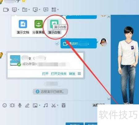 11、 在聊天界面点击接听按钮,即可开启演示白板功能。