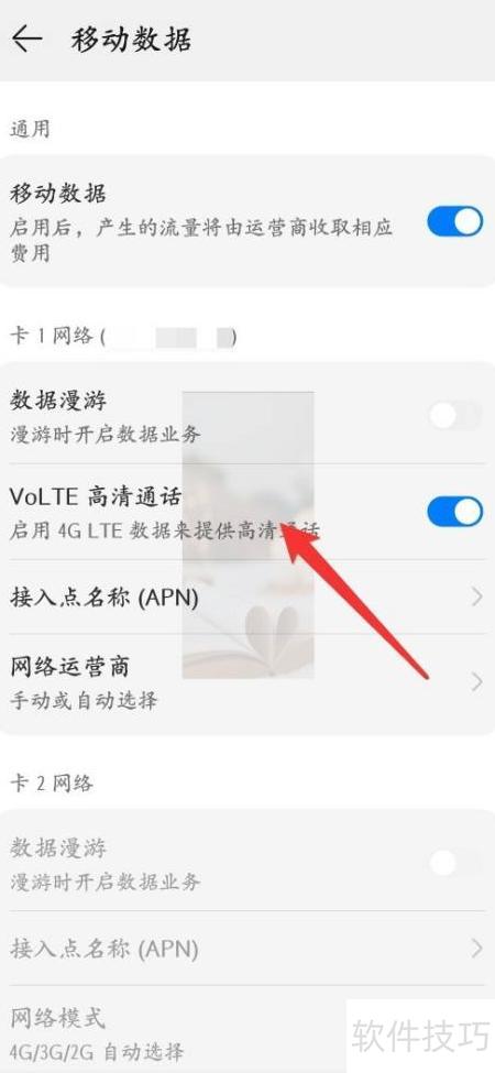 6、 进入移动数据设置,关闭VOLTE高清通话选项即可完成操作。
