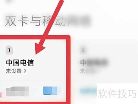 14、 进入双卡与移动网络设置,选择要关闭HD功能的手机卡(如电信卡),另一张卡的操作方法相同。