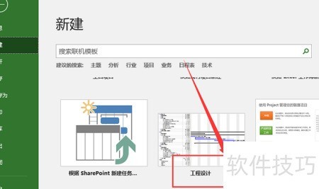 1、 启动Project 2016,选择新建工程,再点击设计模板即可开始。