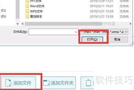 3、 在页面底部点击添加文件按钮,将弹出文件夹窗口,选择所需文件并加入处理列表;也可直接选中文件后拖拽至处理列表中完成添加操作。