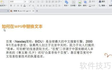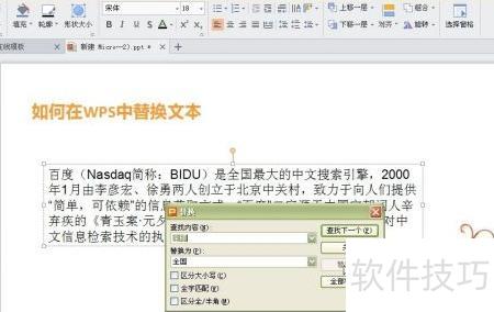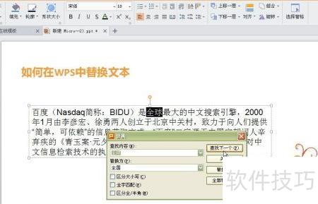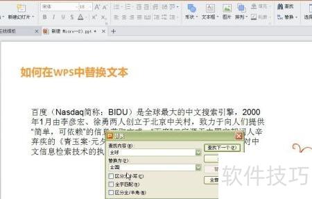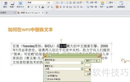 编辑文本时,常需替换部分内容。在WPS中,这一操作十分便捷,只需简单几步即可完成局部或全局替换,提升编辑效率,让我们一起来掌握这项实用技巧。