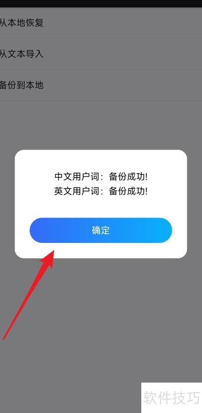 4、 在词库备份恢复页面,选择备份到本地功...