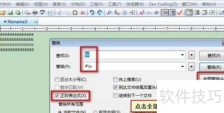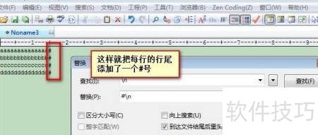 4、 若需在每行末尾添加特定字符,例如为文本文件每行结尾加上,无需逐行复制粘贴。只需按下Ctrl+H,按照图示步骤操作,即可快速完成批量处理,高效便捷,节省大量时间。
