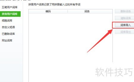 4、 进入词库导入页面,可将已保存的拼音词库进行导入操作。