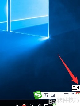 1、 在电脑桌面右下角,找到搜狗五笔输入法,点击其最右侧的工具箱图标即可。