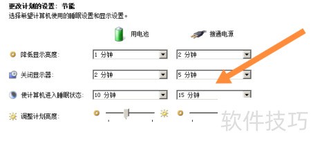 3、 设置显示器关闭及电脑进入睡眠的等待时间。